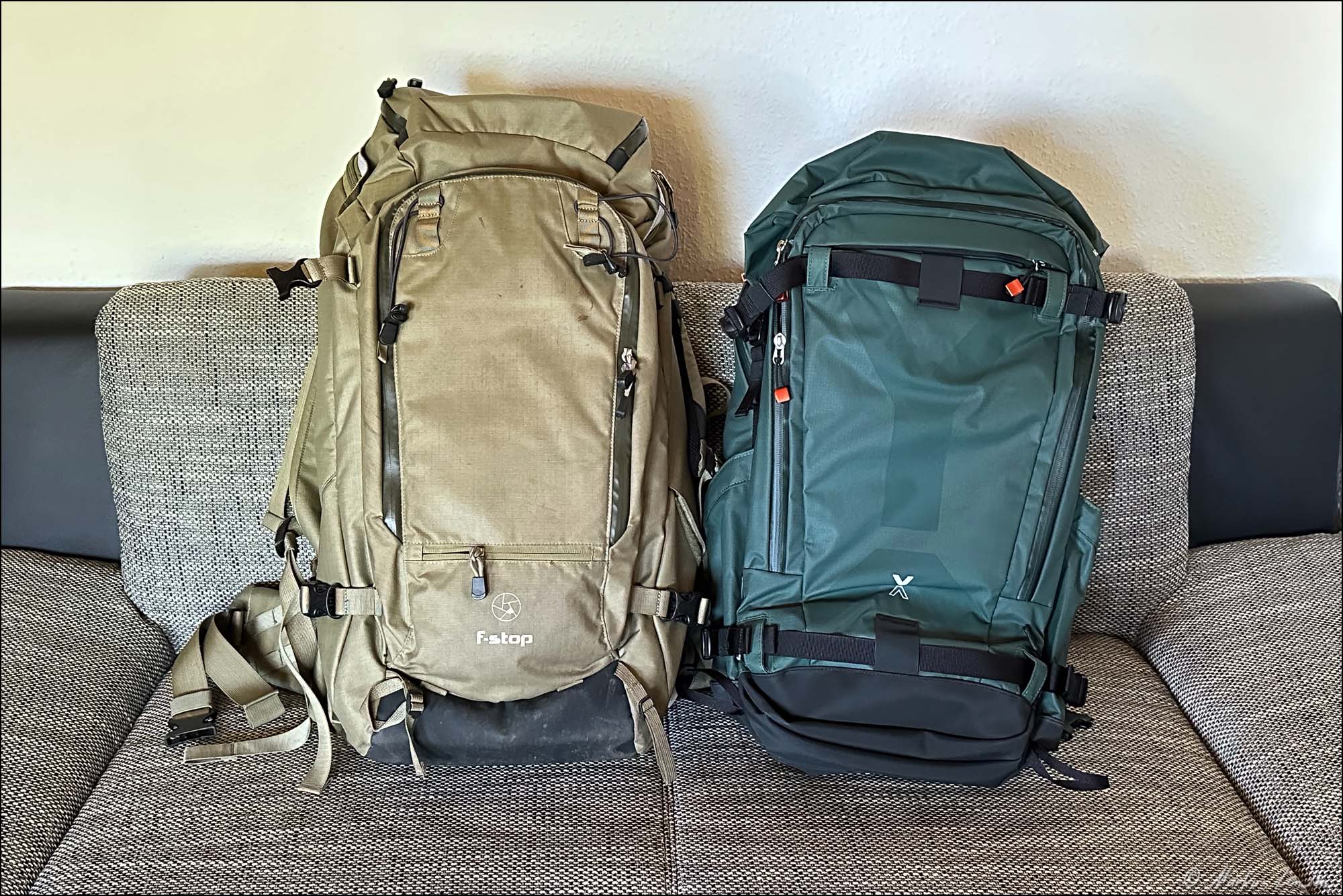 Größenvergleich F-Stop Sukha (links) und NYA-EVO Fjord 60-C (rechts)
